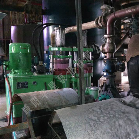 采用一臺YB400__120陶瓷柱塞泥漿泵為6臺800平方米隔膜壓濾機進料。設定壓力位6.5公斤,開始進料時陶瓷柱塞運行頻次大,當達到設定壓力時陶瓷柱塞頻次逐漸減少即電機轉速變慢電機更節(jié)能,根據(jù)濾布的新舊及物料濃度的變化進料時間為30—60分鐘初始流量為120個立方逐漸減少,由于物料的特性含沙及強腐蝕性對柱塞泵4個單向閥內的橡膠閥片及陶瓷柱塞的橡膠密封損傷較大,4個橡膠閥片為1個月更換一次,橡膠密封為20天更換一次,每次費用為4000—5000元,這樣年維修費就為60000元左右。每次維修1—2人時間為1—2小時。